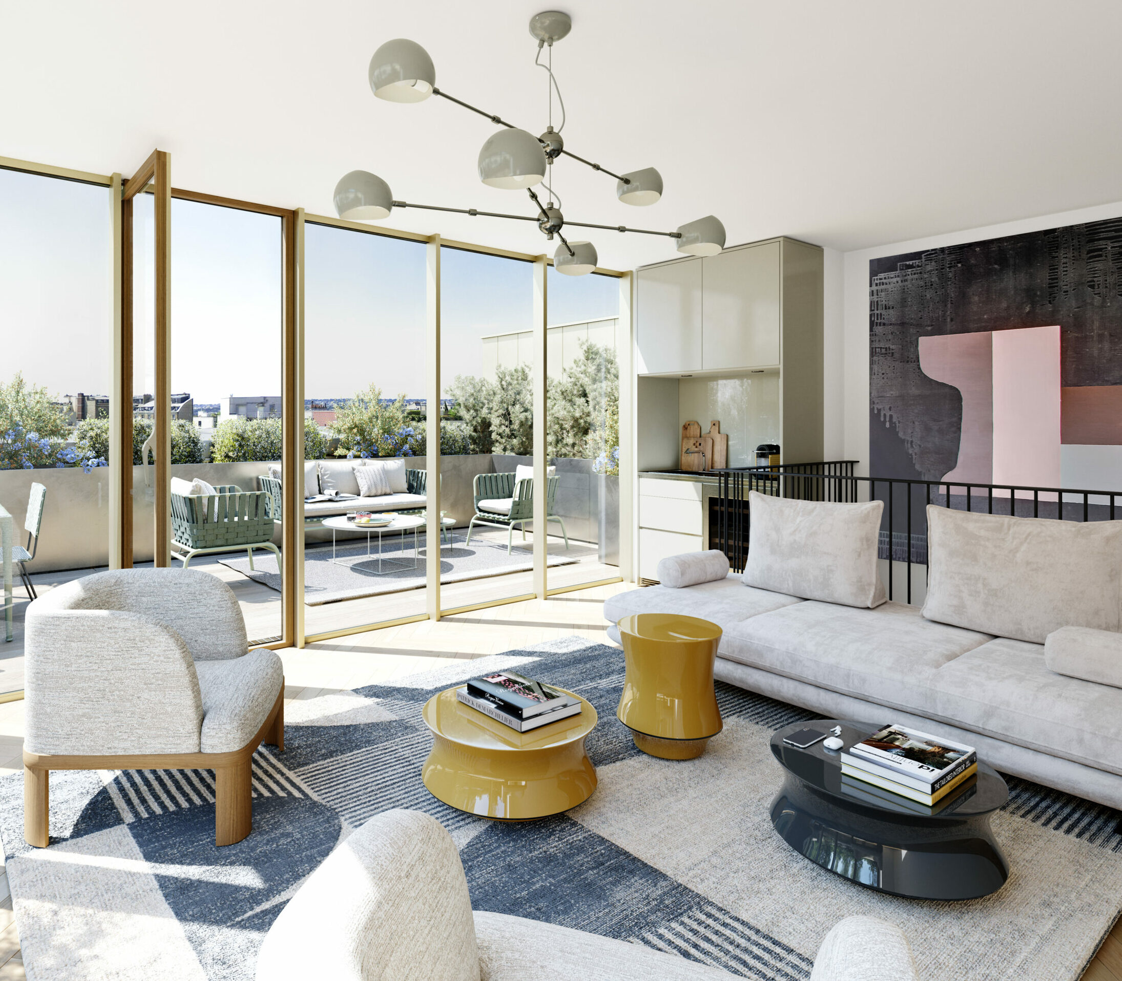 De splendides espaces extérieurs : jardins privatifs, vastes terrasses ou rooftops.